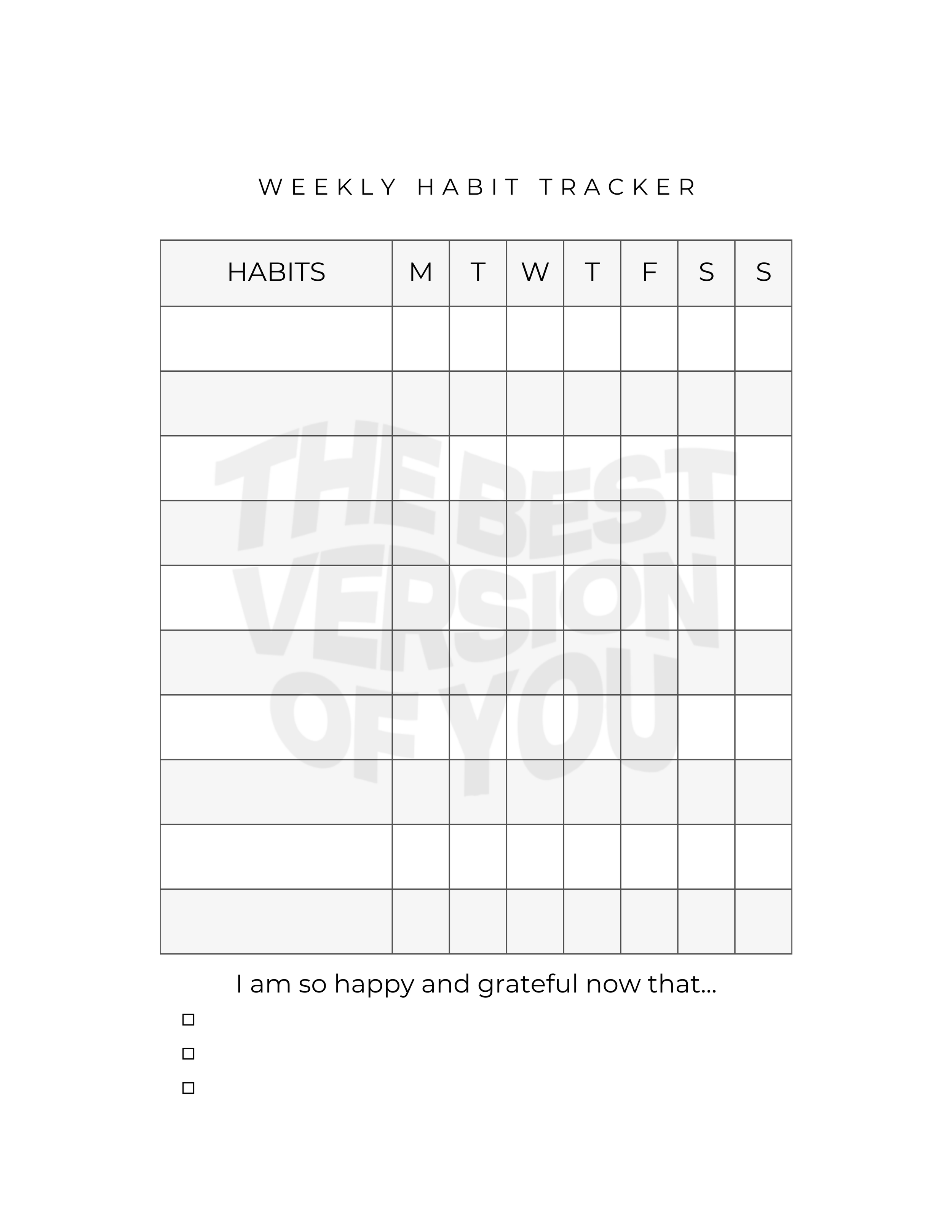 WEEKLY HABIT TRACKER (Best Version of You sticky notepad) $14.99 BEST VERSION OF YOU 8 WEEK MINDSET COURSE $50.00